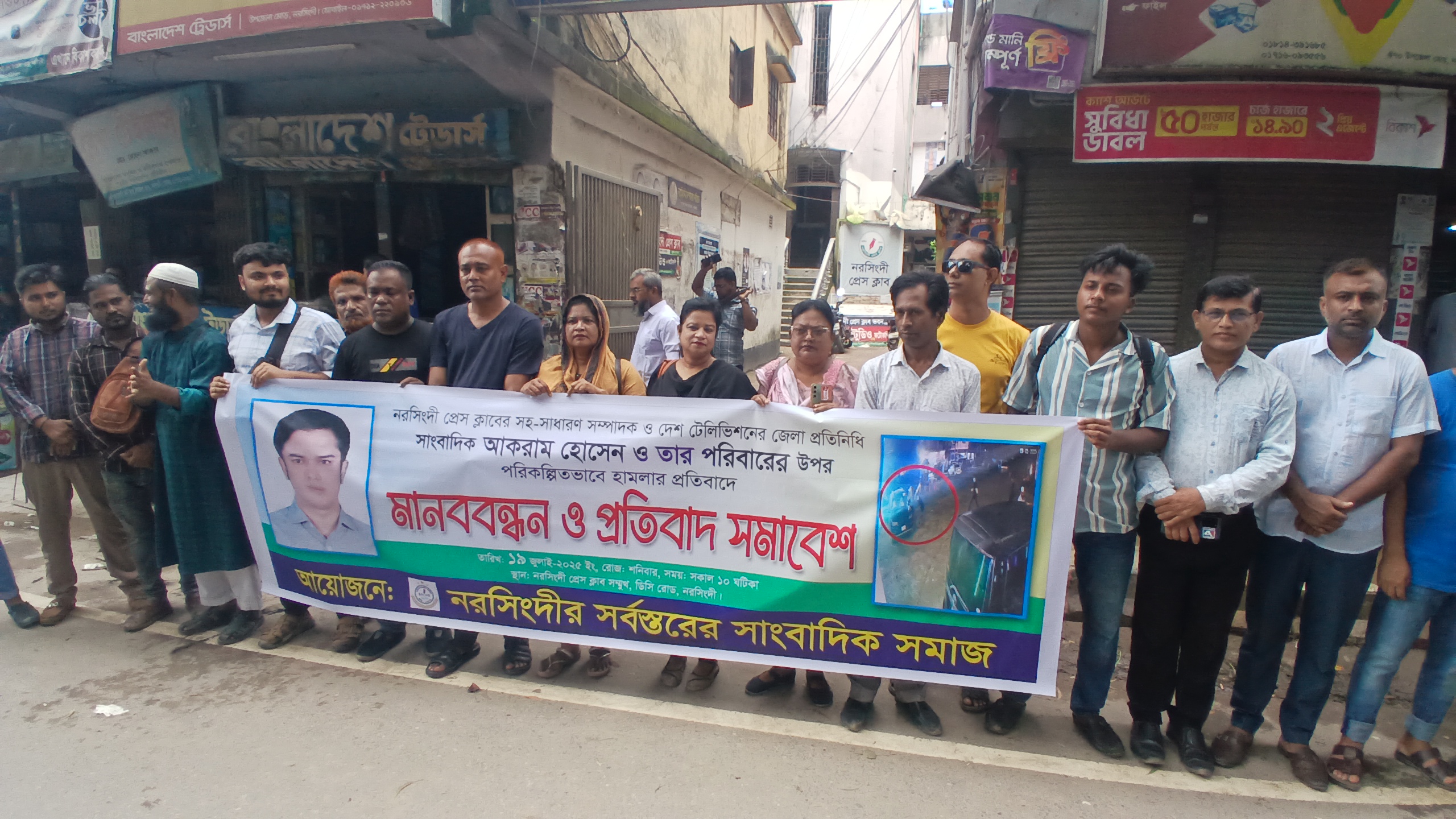 নরসিংদীতে ভূমি অধিগ্রহণে অনিয়মের অভিযোগে বিরুদ্ধে মানববন্ধন